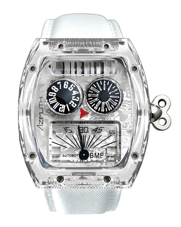 Azimuth is a highly innovative and avant-garde Swiss watchmaking brand founded by Alvin Lye and Christopher Long in 2003. Azimuth is known for its unconventional and boundary-pushing approach to watch design, often creating timepieces that resemble mechanical toys more than traditional wristwatches.